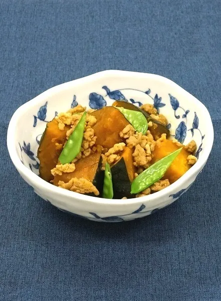 かぼちゃの甘味と鶏そぼろの旨味が引き立つ、優しい味わいの煮物です。